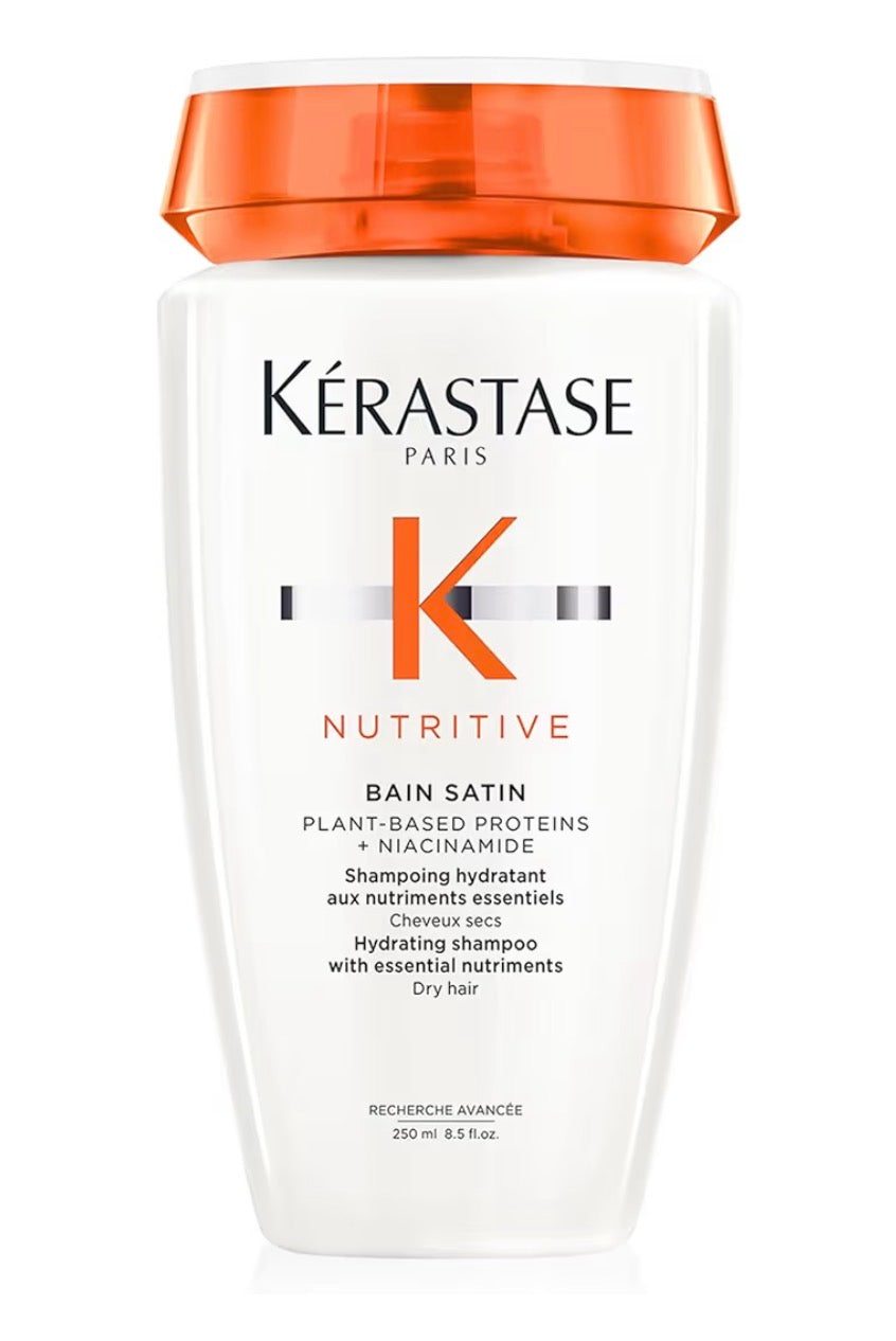 The Kérastase Nutritive shampoo is a gentle hydrating formula designed for dry hair. It features a nourishing protein blend with niacinamide, which moisturizes, softens, and restores shine to the hair. The shampoo is paraben-free and comes in a 250 ml liquid form, suitable for adults. It has an unscented fragrance and is known for leaving hair feeling soft and looking shiny.