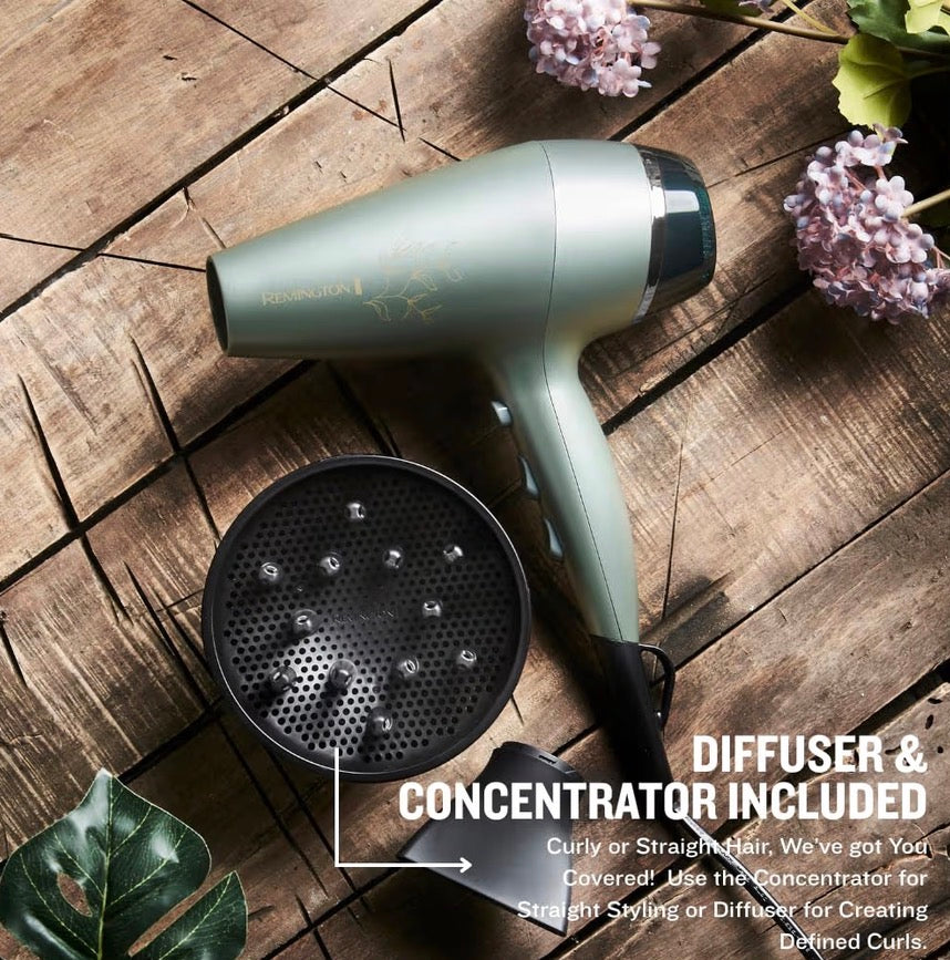 Remington Hair Dryer, Botanical Micro-Conditioner Infused Hairdryer with Diffuser, Powerful 2300W Hairdryer, BotaniCare Technology, Ionic Frizz-Control, Salon Quality Long-Life Motor